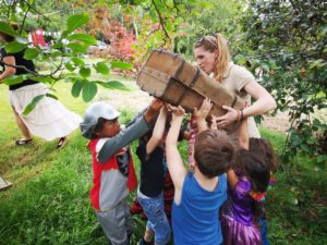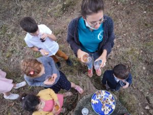 Enfants qui jouent à un jeu de piste organisé par Ô'évent